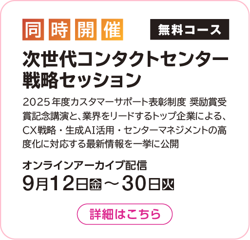 9月12日(金)~9月30日(火)2025年度カスタマーサポート表彰制度 奨励賞受賞記念講演と、業界をリードするトップ企業による、CX戦略・生成AI活用・センターマネジメントの高度化に対応する最新情報を一挙に公開